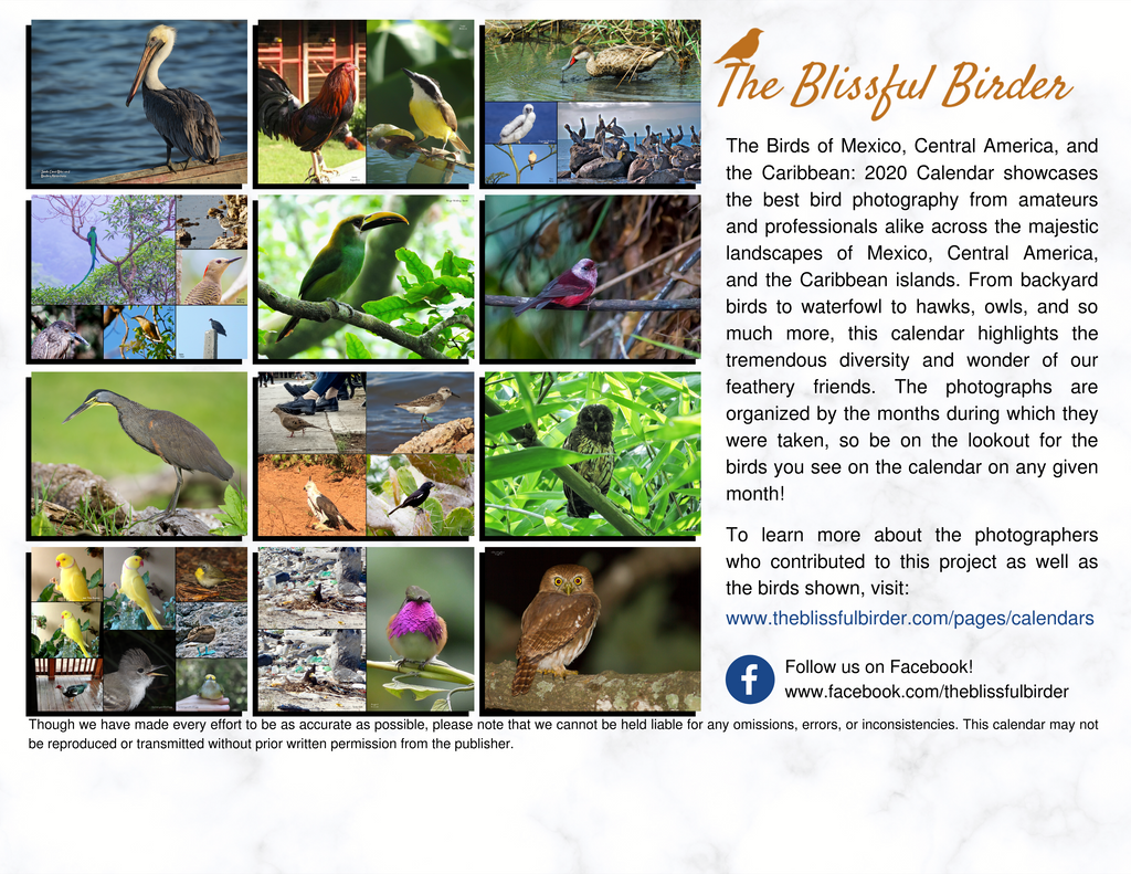 The Birds of Mexico, Central America, and the Caribbean: 2020 Calendar showcases the best bird photography from amateurs and professionals alike across the majestic landscapes of Mexico, Central America, and the Caribbean islands. From backyard birds to waterfowl to hawks, owls, and so much more, this calendar highlights the tremendous diversity and wonder of our feathery friends. The photographs are organized by the months during which they were taken, so be on the lookout for the birds you see on the calendar on any given month!