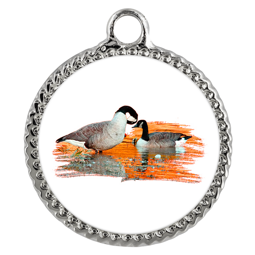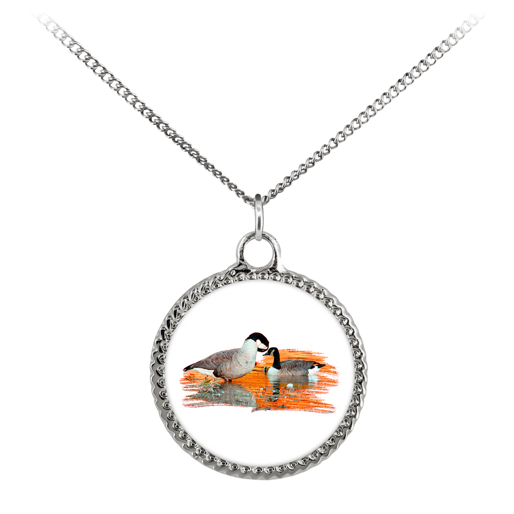 Accessorize your outfit with this beautiful necklace featuring a UV printed coin charm. The charm is silver plated with a deco patterned border. The necklace is comprised of a sterling silver plated brass chain with an elegant matte finish. The cable style chain comes in either 16” or 30” length which is ideal for layering. All materials are nickel and lead free. Each necklace comes in a re-usable black velvet pouch, perfect for storage or gifting.
