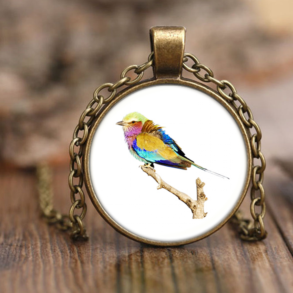 Lilac-breasted Roller Necklace Antique Brass
