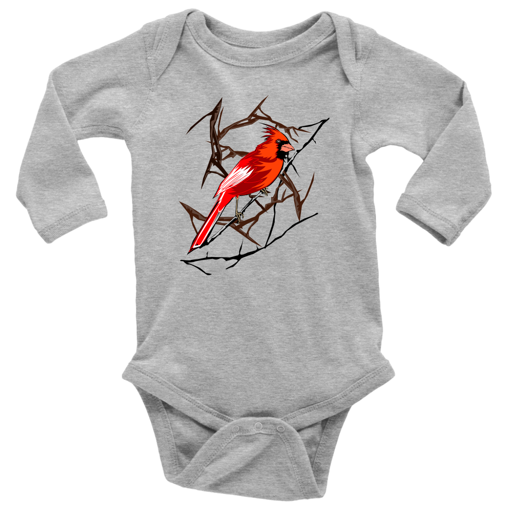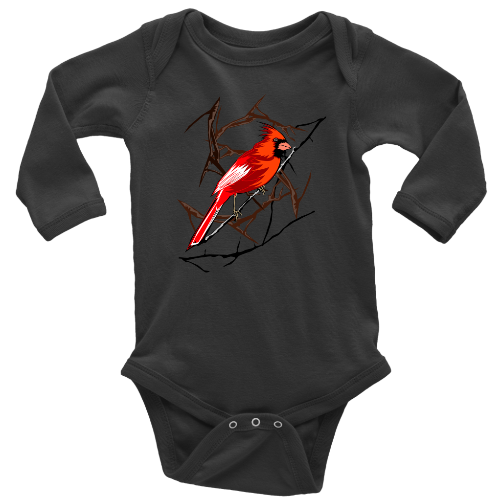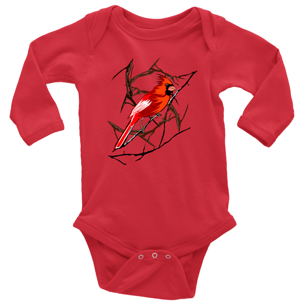 Northern Cardinal Bird Long Sleeve Baby Bodysuit