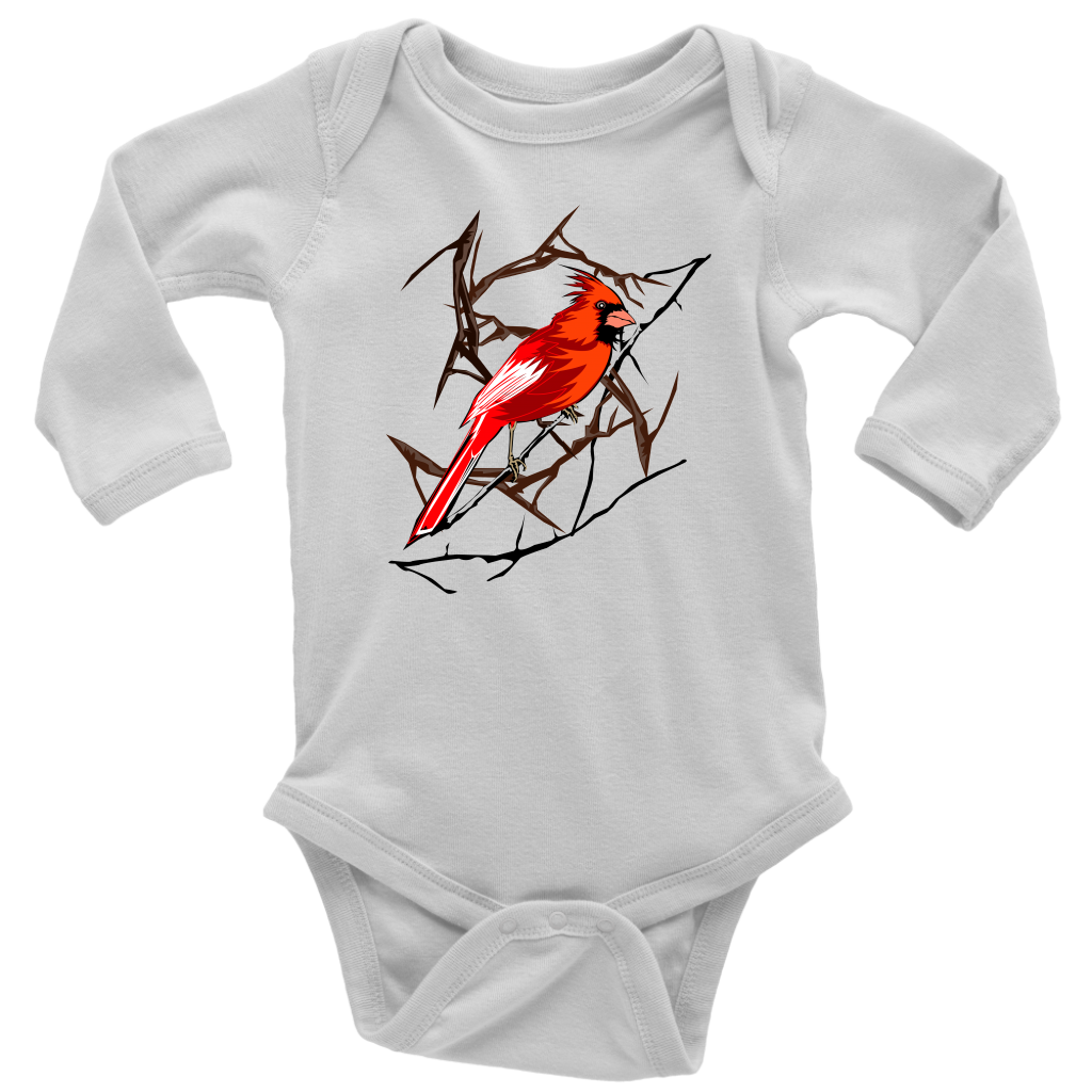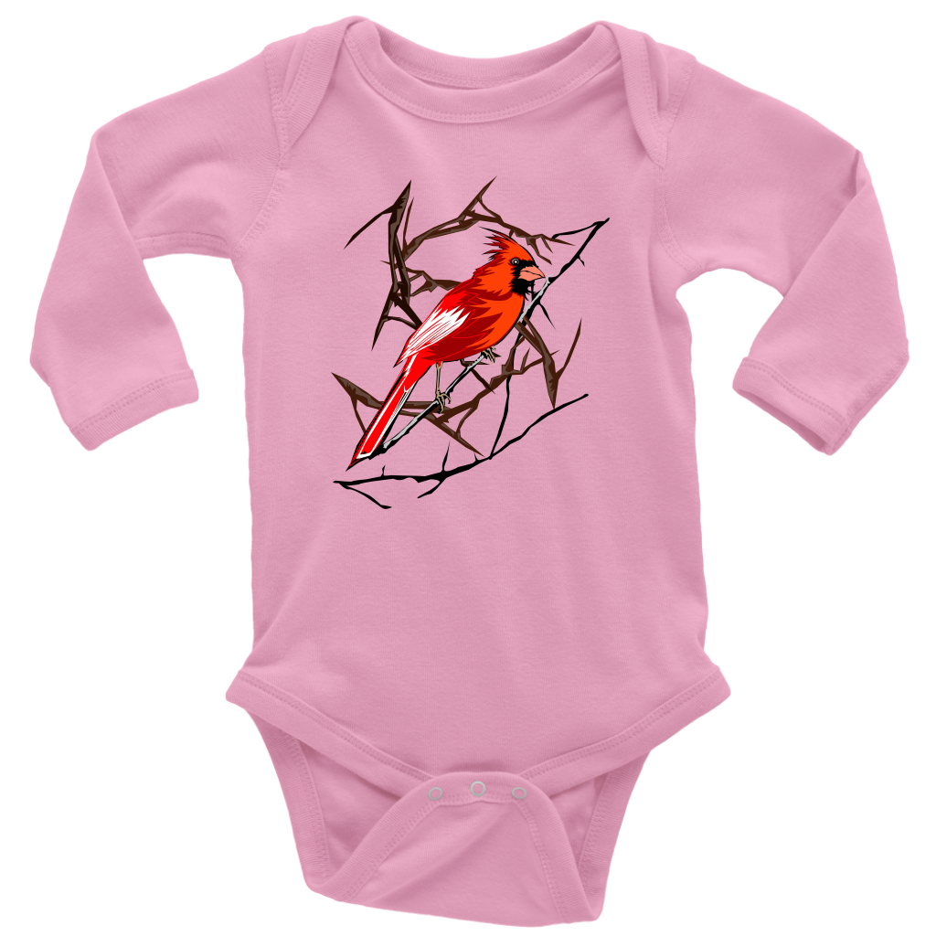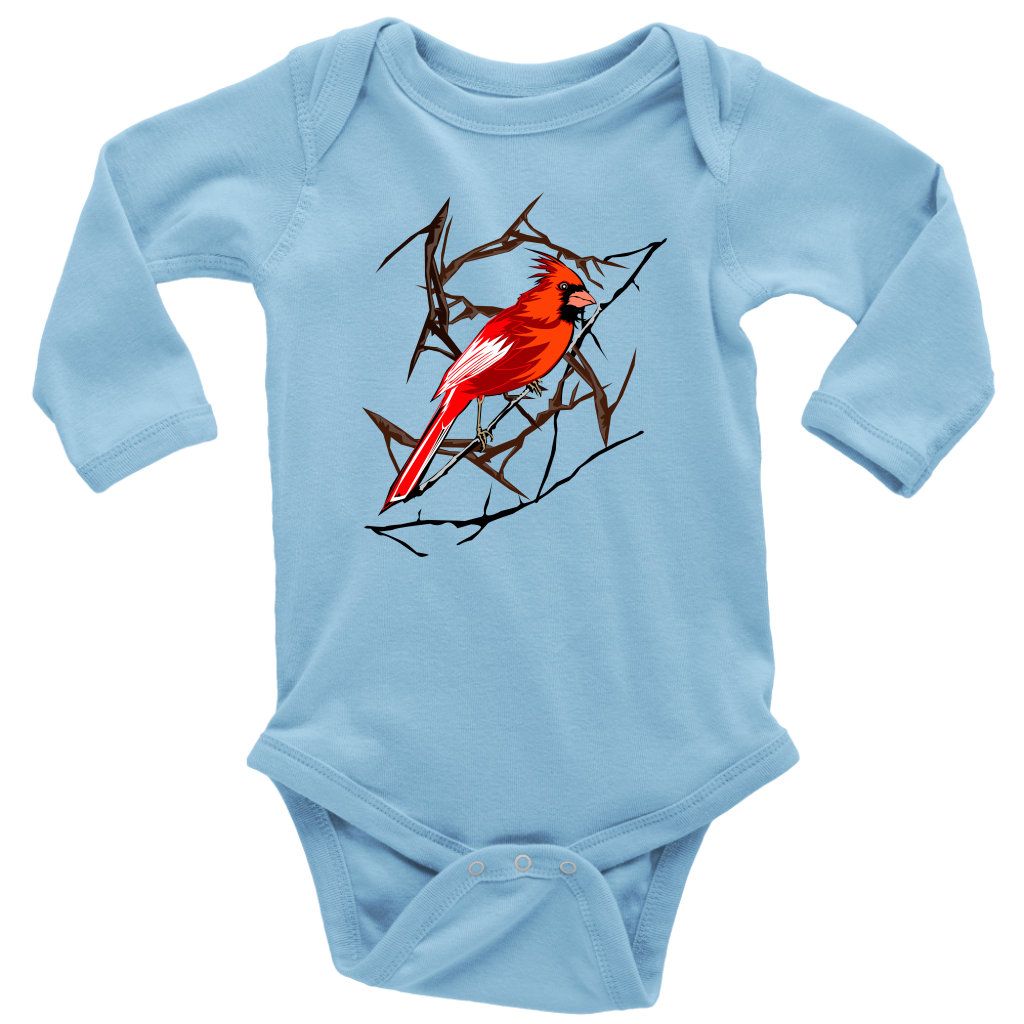 Northern Cardinal Bird Long Sleeve Baby Bodysuit